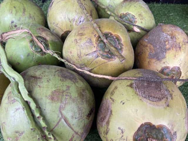 その果実であるココナツは、ココナツミルクを楽しむ他、脂肪分が利用でき、太い繊維はタワシにもなる。