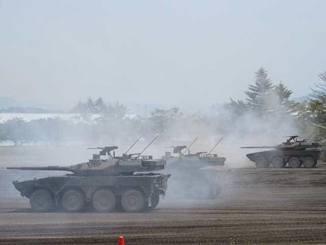 訓練展示では16式機動戦闘車がまず施設科と野戦特科の支援として進出し、敵へ直に攻撃する段になると90式戦車が機動戦闘車の前線を越えて進撃、戦果を拡張すべく10式戦車が90式戦車の前線を越えて進むと言う展開で進みました。