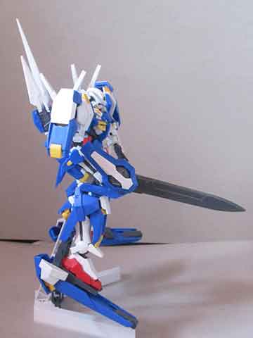 アヴァランチエクシアはガンダムエクシアの高速突撃仕様で、各所についた追加装甲のようなパーツは基本的に推進力強化のためにあるというユニークな機体です。