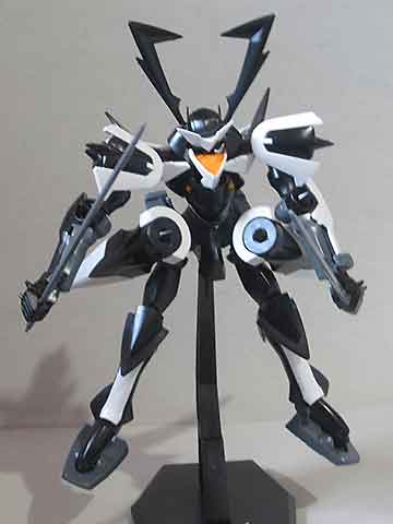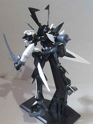 背中のケーブルは接続しづらいところが難点ですがこの部分は改善点は現時点でもないでしょう。クリアパーツはビームエフェクトのみで、この武器に関しては本編であまり使用していません。キットには日本の実体剣と台座がついています。