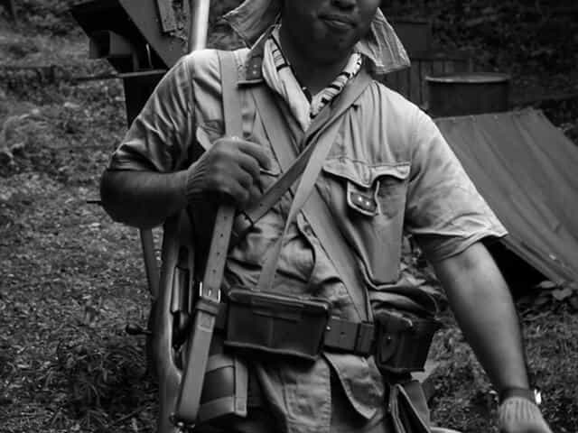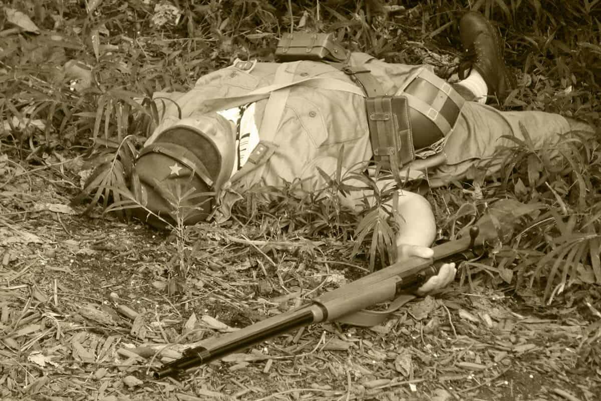 ある日、いつものように銃を持って進軍していたとき、突然、敵と鉢合わせになり戦闘が始まりました。