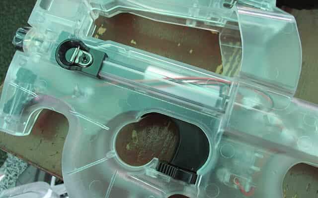 ただ光線銃なので、いわゆる「射撃感」がないのがいまひとつ寂しく感じるのですが、ゆくゆくは専用のリコイルユニットの開発やガスブロと連動で再現する事ができるようです。