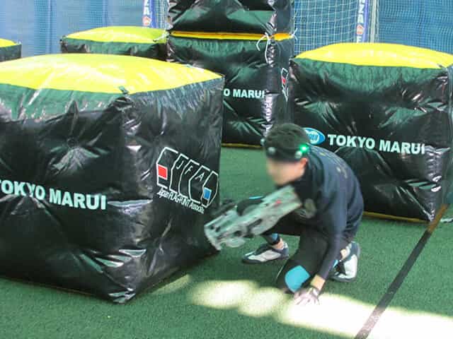 フラッグハント使う空気で膨らませたバンカー(障害物)を設置してあり、ルールはサバゲのフラッグ戦のルールと同じです。