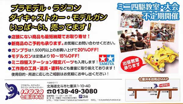 北海道北斗市の「イルカ」というショップです。そこはラジコンやプラモをメインで扱ってるところで、エアガンもおいていますが、あくまで取り扱っているというだけであまり専門的ではありません。