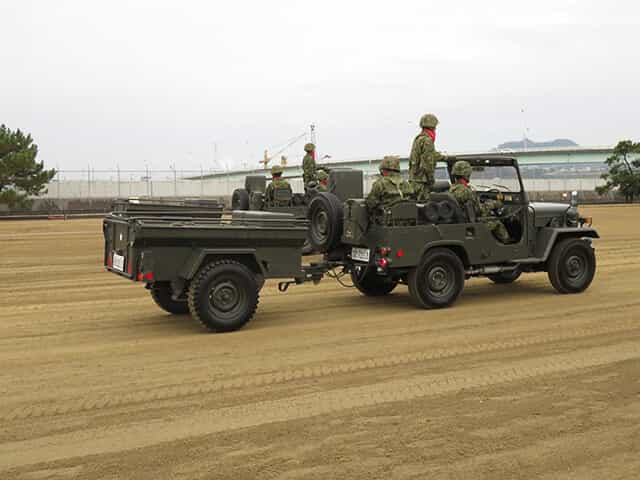 現在の89式小銃を担ぐ隊員に続いて64式小銃を担ぐ隊員が徒歩で行進したり、ジープを走らせる車輌行進で見る機会が少なくなって来た古い装備を見せてくれました。