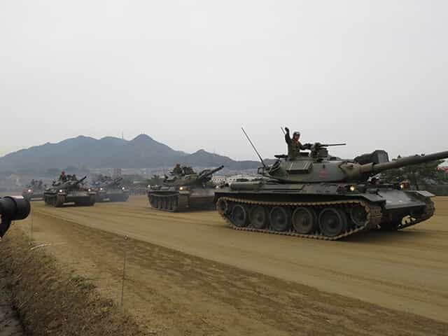 新旧装備が入り混じる観閲行進