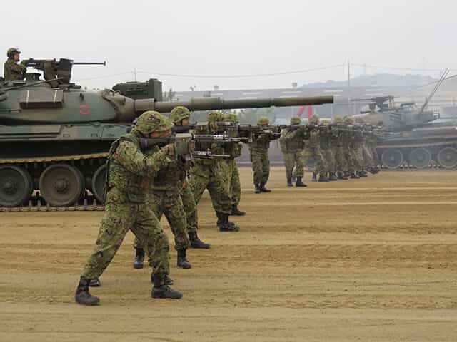 観閲行進では20周年を記念して普通科隊員が新旧装備を交えて行進しました。