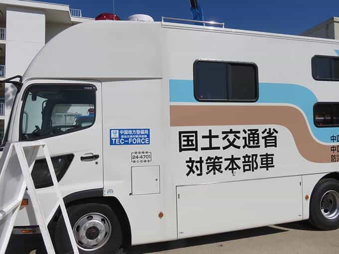 また国土交通省中国地方整備局も加わり車輌や降雨体験装置の展示をしていました。