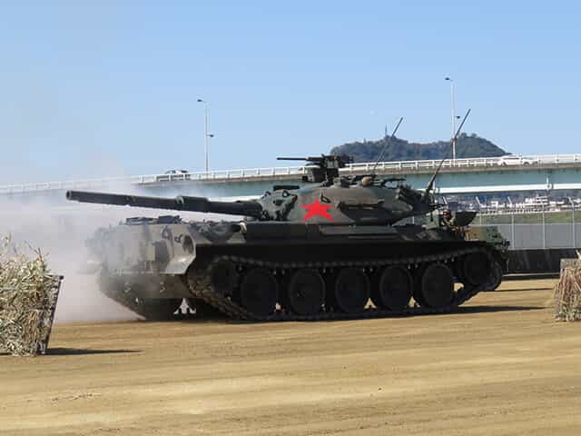 新しい演出として敵軍の戦車役をしている74式戦車1両が2両の軽装甲機動車と共に自軍陣地へ戻る場面がありました。