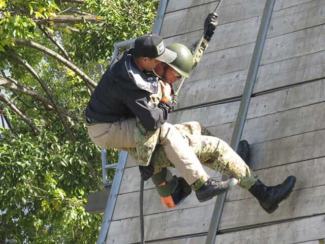 海田市駐屯地の記念行事ではレンジャーによる訓練展示もあります。