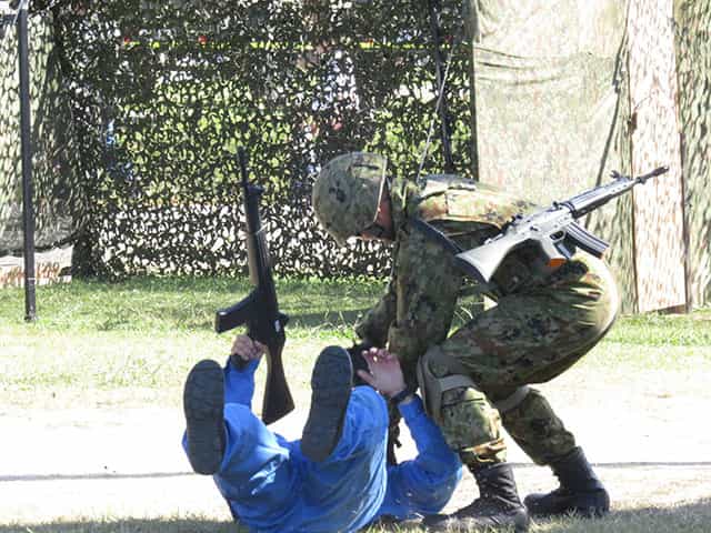 最後はレンジャーによる拉致された民間人を救出する戦闘訓練展示も行われました。