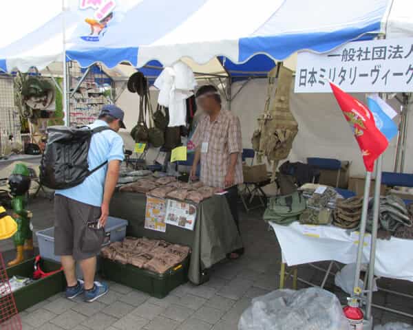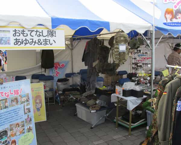 一般社団法人ミリタリーヴィーグル協会、株式会社ユース、大塚製薬、一般社団法人BERT INTERNATIONALなどによる、パネル展示、グッズに販売エリア。