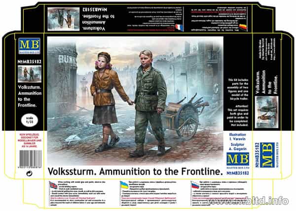 国民突撃隊の少年と少女がリヤカーで銃器を運搬しています。パッケージに最前線と書いてあるのは、イラストの背景から大戦末期の敗戦色の濃くなったドイツ国内であるからなのでしょう。なんか重いですね。