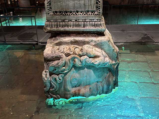 この2体のメデューサも同じく、他の遺跡から運ばれてきた。だが、古代の人々は怪物たるメデューサを恐れ、わざわざ柱の一番下に、逆さまや横向きに埋め込んだ。
