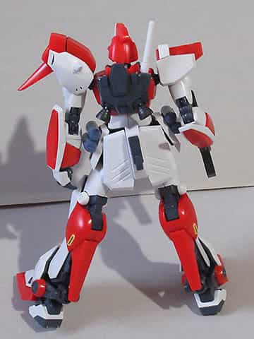 武器は専用のビームライフル、グレネードランチャー、何故か一本に減ったビームサーベル、頭部バルカン砲となっていて、シールドも省略。作中では武装強化の特徴を使わなかった反面、疑似人格コンピューターC.A(シャア・アズナブルのことと思われます)を搭載している所がポイントですが、3倍のスピードを出したりはしません。