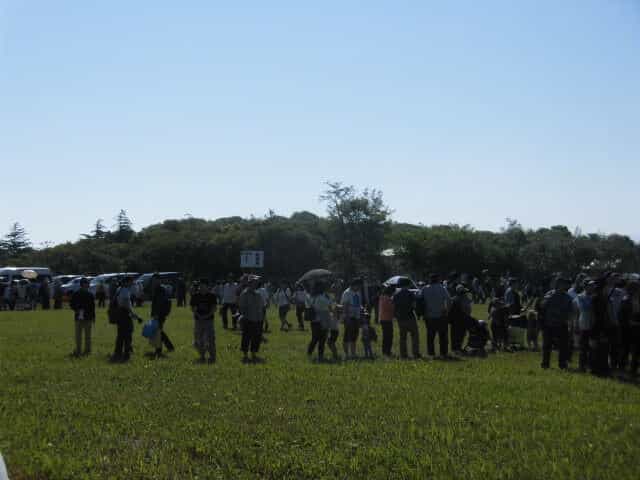 難点は「基地南駐車場」から基地内の会場へはシャトルバスで向かいます。このバスに乗るために列に並んで待つ必要があります。