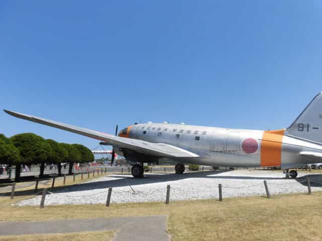その資料館のそばには記念として保存されている用廃展示機の航空機が置かれています。