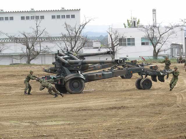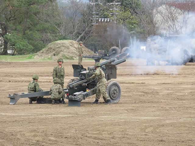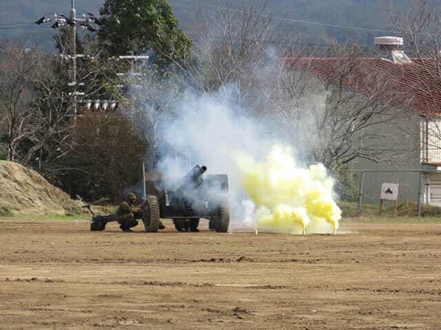 敵役である赤部隊には演奏に登場した105ミリ榴弾砲が置かれFH-70と撃ち合う「対砲射撃」が繰り広げられる場面が日本原らしいです。