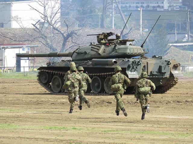 74式戦車の援護で敵陣へ突撃し制圧する普通科隊員達の姿を見せるのは日本原では珍しいものでした。