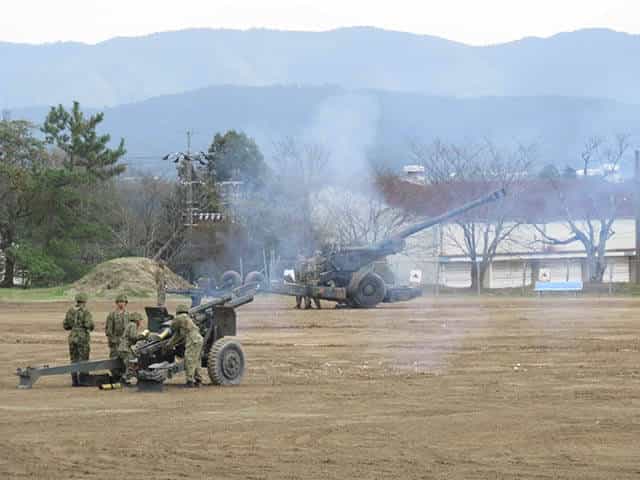 観閲行進の後に行われた音楽隊の演奏ではチャイコフスキーの「1816年」が演奏され天105ミリ榴弾砲だけではなく155ミリ榴弾砲FH70も加わる日本原独自の演奏がありました。