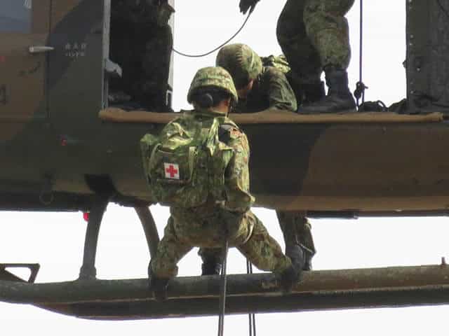 以前来た時には建物の屋上から壁伝いにロープで降下するレンジャー訓練の展示を女性隊員で行っていました。