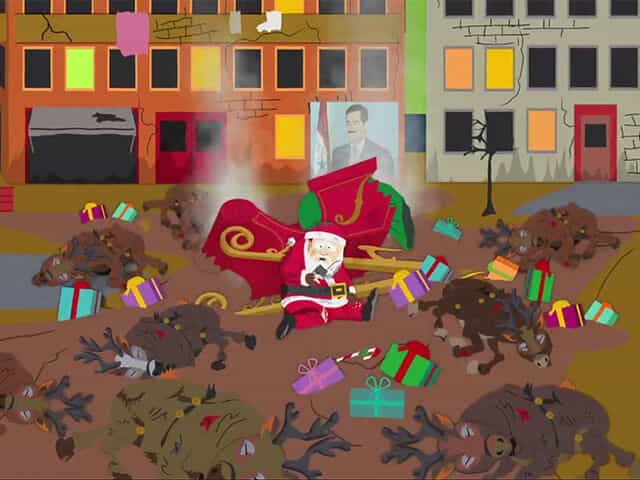 実際サウスパークでは、プレゼントを配るために中東に侵入したサンタが撃墜されて、イエス・キリストらによって救出されるというエピソードがあります。