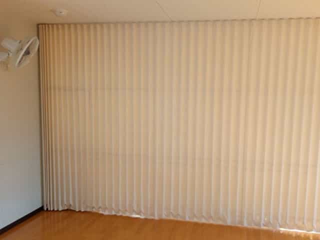 私は部屋に戻ってすぐアコーディオンカーテンを押し入れから引っ張り出して、元の位置に取り付けて仕切りに。