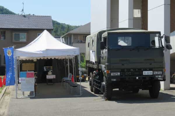 そこに自衛隊の車輛とテントが並んでいます。