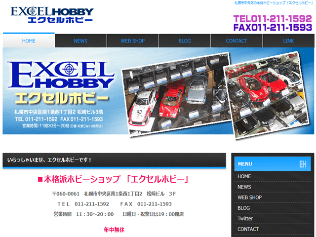 札幌中心部の本格ホビーショップ エクセルホビー。 プラモデル、ミニカー、ガスガ... -