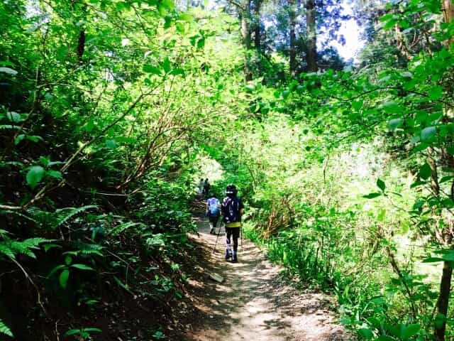 例えば春に行けば針葉樹のきれいな緑の中で暖かな木漏れ日を感じながら登ることができますし、夏ならばセミの声を聞きながらさわやかな風の心地よさを感じながら登ることができます。秋ならば紅葉を楽しめますし、冬ならば落ち葉の香りを感じながら登ることのできるので素敵です。