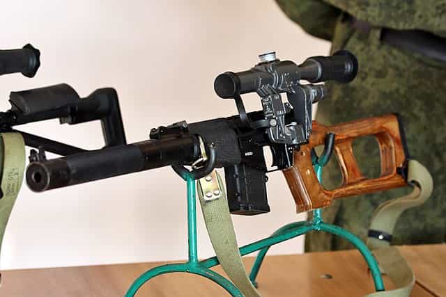 旧ソ連軍・現ロシア軍で狙撃銃と言えば1960年代に開発され今現在も使用されているドラグノフの知名度が高いだろう。こちらはAKシリーズの操作系を踏襲しつつ、7.62x54mmR弾を使用し分隊単位に配備されている。