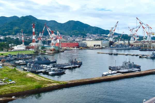 大和が収納されていたというドッグやタンカー、船の往来も多く快晴で良く見えました。
