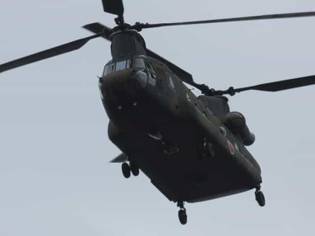 米子駐屯地の分屯地として今年3月に美保分屯地が置かれた事もあり美保分屯地のCH-47による飛行展示も行われました。