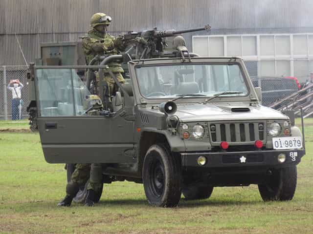 式典の観閲行進は第8普通科連隊の各中隊が行進し車輌行進では第13旅団所属の87式偵察警戒車に偵察バイク・FH70・93式近距離地対空誘導弾と81式短距離地対空誘導弾・74式戦車に加えて中部方面隊直轄部隊の92式地雷原処理車が参加しました。