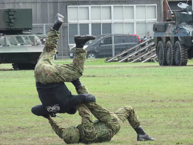 敵役が倒しても何度も立ち上がり陸自隊員に挑むので色んなパターンの近接戦闘を十分見せてくれました。